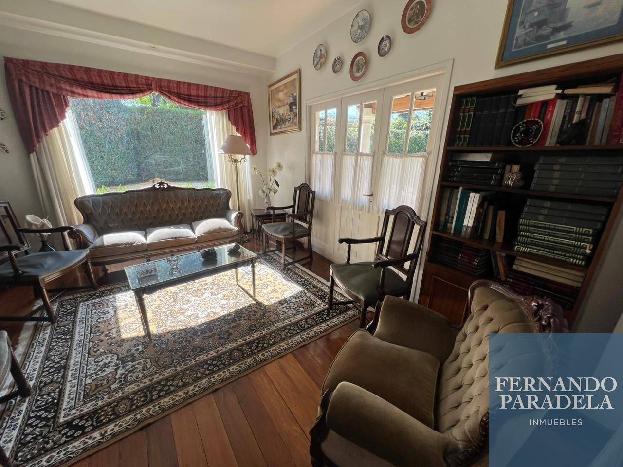 Chalet construido en dos plantas . En planta baja, amplio living comedor con pisos de viraró, hogar y grandes ventanales al parque. Gran cocina comedor diario con horno empotrado y anafe. Toilette. Lavadero. Garage doble con escalera a planta alta, que comunica directo al comedor, lavadero y cuarto de servicio.