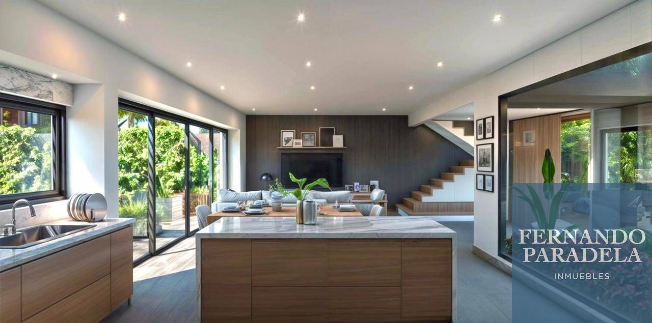 La distribución de la propiedad es funcional y acogedora. En la planta baja, se encuentra un jardín delantero con retiro de frente, espacio guardacoches para dos vehículos, un amplio living integrado con el comedor y la cocina, además de un toilette de recepción y un lavadero independiente. La planta alta alberga la habitación principal en suite con vestidor, junto a dos habitaciones adicionales y un baño completo. Cada rincón está pensado para maximizar el confort y la privacidad, convirtiendo a esta casa en un verdadero hogar.