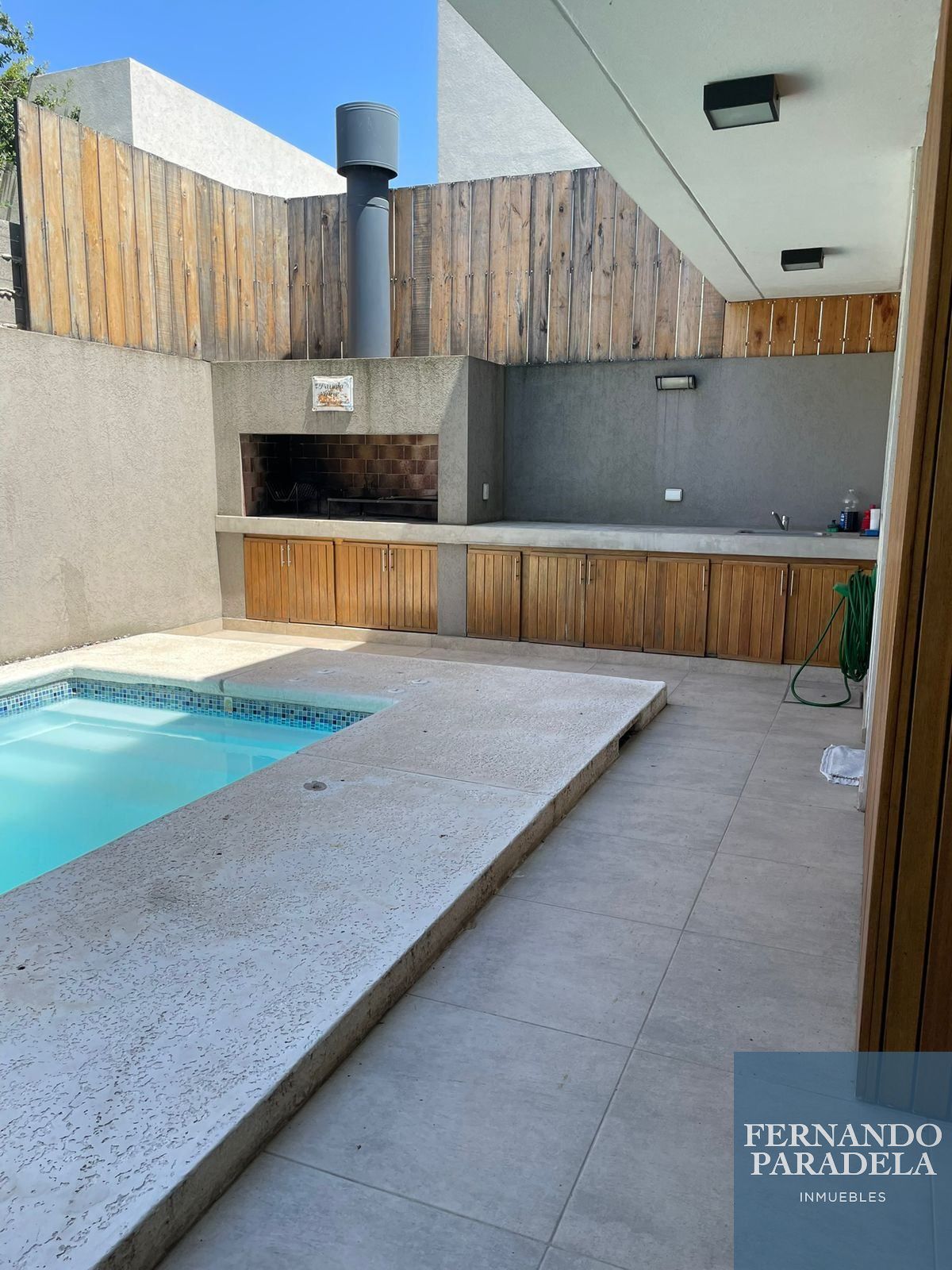 En la planta baja, la casa presenta un amplio living comedor conectado a una cocina integrada, que cuenta con una práctica barra desayunadora y acceso directo al jardín, ideal para disfrutar de momentos al aire libre. Además, dispone de un toilette de recepción, una galería y un encantador jardín con parrilla, perfecto para reuniones familiares y amistosas. En el primer piso, se encuentran tres dormitorios, siendo el principal en suite con vestidor, acompañado de otro baño completo para las habitaciones restantes, proporcionando un excelente confort y privacidad.