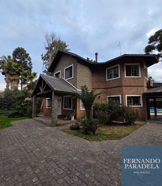 El exterior de la propiedad es un verdadero oasis, con una piscina de 10 x 5 metros, un jardín arbolado que garantiza privacidad y un quincho semi cubierto con parrilla y horno de barro, perfecto para reuniones. También dispone de un lavadero, baño de servicio y cuarto de guardado. La casa está equipada con calefacción por losa radiante, aire acondicionado split, aberturas de madera (mara) con vidrio repartido, pisos de madera tarugados, cerámicos y alfombras en los dormitorios, sistema de alarma y portón de acceso automatizado, asegurando confort y seguridad en cada rincón.