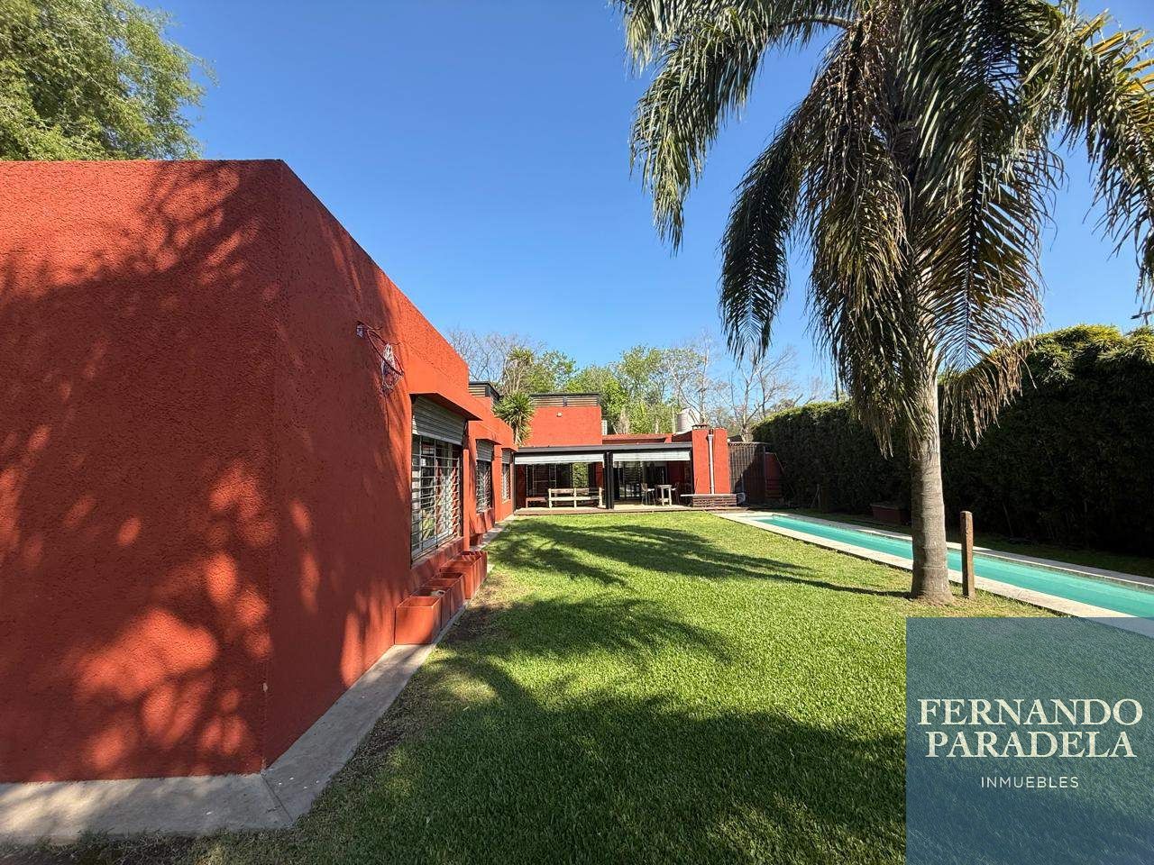 En la planta alta, se encuentra un amplio estudio que ofrece vistas al espléndido jardín, creando un ambiente ideal para el trabajo o el esparcimiento. La galería semicubierta, equipada con parrilla, permite disfrutar de reuniones al aire libre, rodeado de un hermoso jardín con sistema de riego y una espectacular piscina en forma de L con filtro. La propiedad también cuenta con un baño externo y un espacio de guardado útil. Para mayor comodidad, dispone de cochera cubierta para dos autos con portón de acceso automatizado.